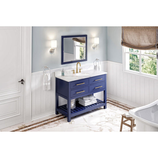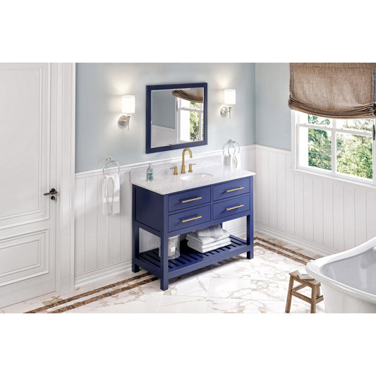 Hardware Resources Jeffrey Alexander Wavecrest 48" Hale Blue Freestanding Vanity With White Carrara Marble Vanity Top, Backsplash and Oval Undermount Sink