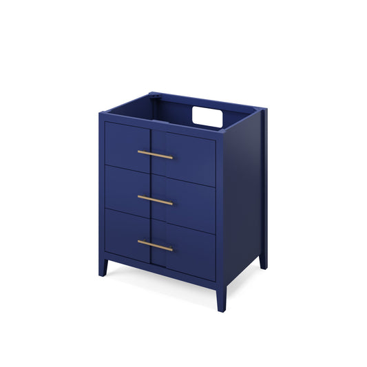 Hardware Resources Jeffrey Alexander Katara 30" Blue Steel Freestanding Vanity With White Carrara Marble Vanity Top, Backsplash and Rectangle Undermount Sink
