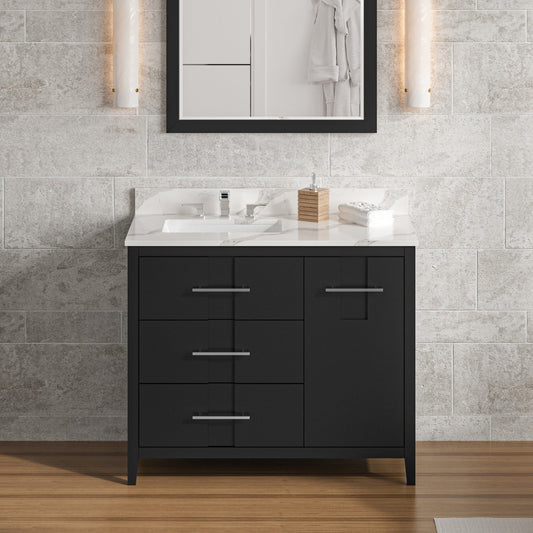 Hardware Resources Jeffrey Alexander Katara 42" Black Freestanding Vanity With Left Offset, Calacatta Vienna Quartz Vanity Top, Backsplash and Rectangle Undermount Sink