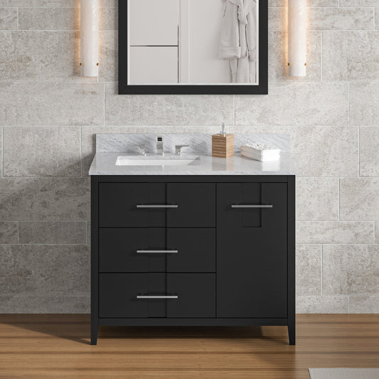 Hardware Resources Jeffrey Alexander Katara 42" Black Freestanding Vanity With Left Offset, White Carrara Marble Vanity Top, Backsplash and Rectangle Undermount Sink
