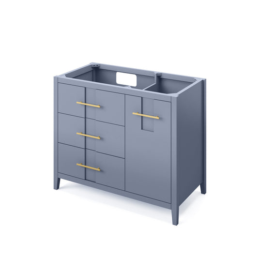 Hardware Resources Jeffrey Alexander Katara 42" Hale Blue Freestanding Vanity With Left Offset, Black Granite Vanity Top, Backsplash and Rectangle Undermount Sink