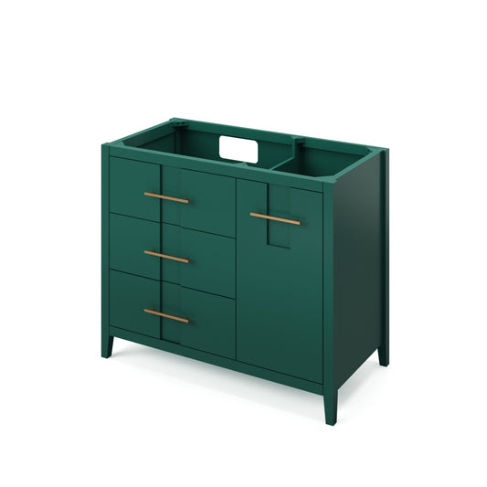 Hardware Resources Jeffrey Alexander Katara 42" Green Freestanding Vanity With Left Offset, Black Granite Vanity Top, Backsplash and Rectangle Undermount Sink