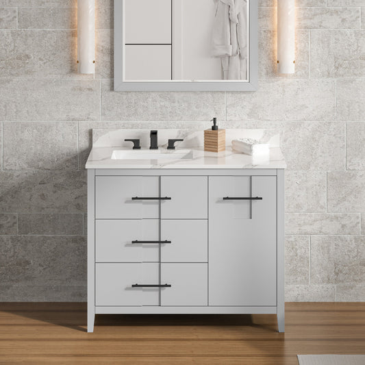 Hardware Resources Jeffrey Alexander Katara 42" Grey Freestanding Vanity With Left Offset, Calacatta Vienna Quartz Vanity Top, Backsplash and Rectangle Undermount Sink