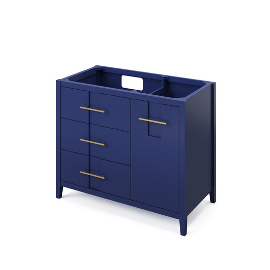 Hardware Resources Jeffrey Alexander Katara 42" Blue Steel Freestanding Vanity With Left Offset, Black Granite Vanity Top, Backsplash and Rectangle Undermount Sink