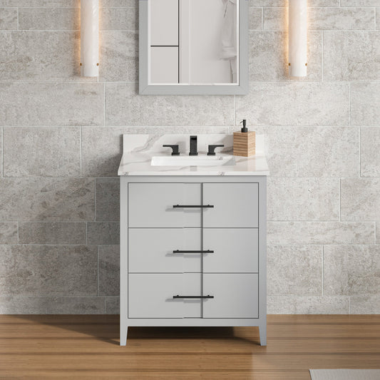 Hardware Resources Jeffrey Alexander Katara 30" Grey Freestanding Vanity With Calacatta Vienna Quartz Vanity Top, Backsplash and Rectangle Undermount Sink
