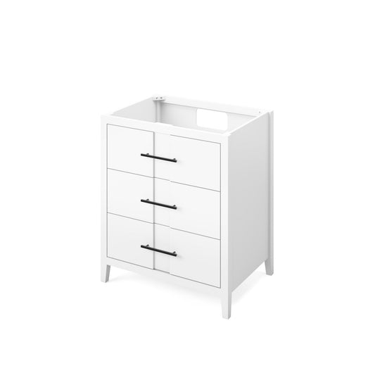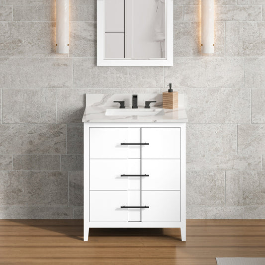 Hardware Resources Jeffrey Alexander Katara 30" White Freestanding Vanity With Calacatta Vienna Quartz Vanity Top, Backsplash and Rectangle Undermount Sink