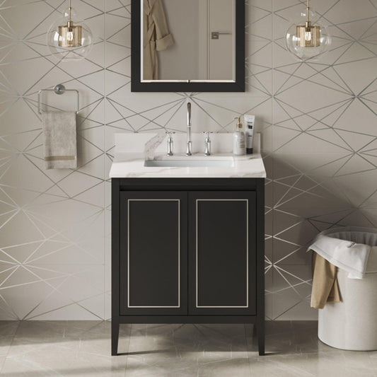 Hardware Resources Jeffrey Alexander Percival 30" Black Freestanding Vanity With Calacatta Vienna Quartz Vanity Top, Backsplash and Rectangle Undermount Sink