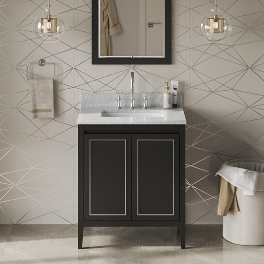 Hardware Resources Jeffrey Alexander Percival 30" Black Freestanding Vanity With White Carrara Marble Vanity Top, Backsplash and Rectangle Undermount Sink