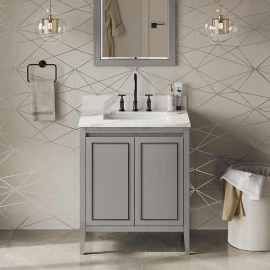 Hardware Resources Jeffrey Alexander Percival 30" Grey Freestanding Vanity With Calacatta Vienna Quartz Vanity Top, Backsplash and Rectangle Undermount Sink