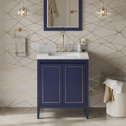 Hardware Resources Jeffrey Alexander Percival 30" Hale Blue Freestanding Vanity With White Carrara Marble Vanity Top, Backsplash and Rectangle Undermount Sink