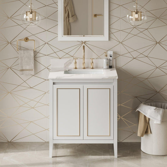 Hardware Resources Jeffrey Alexander Percival 30" White Freestanding Vanity With Calacatta Vienna Quartz Vanity Top, Backsplash and Rectangle Undermount Sink