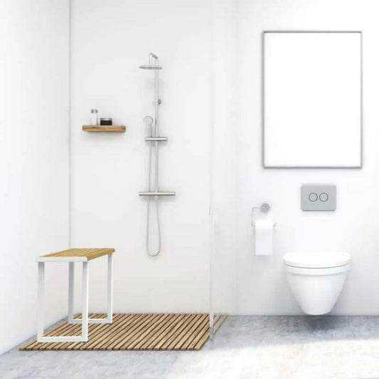 Invisia 24" Rectangle Ash Stained Bamboo Freestanding Shower Bench With Black Frame