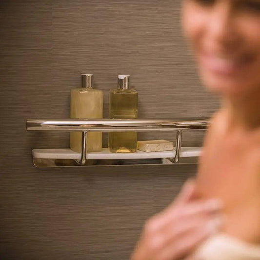 Invisia 20" Polished Chrome Wall-Mounted Shampoo Shelf With Integrated Grab Bar