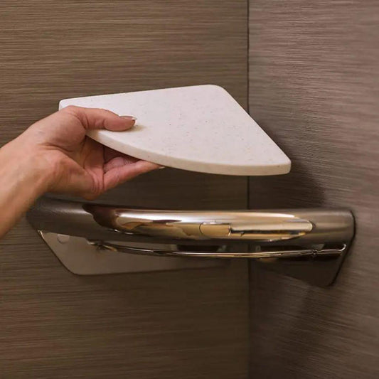 Invisia 9" Brushed Stainless Wall-Mounted Corner Shelf With Integrated Grab Bar