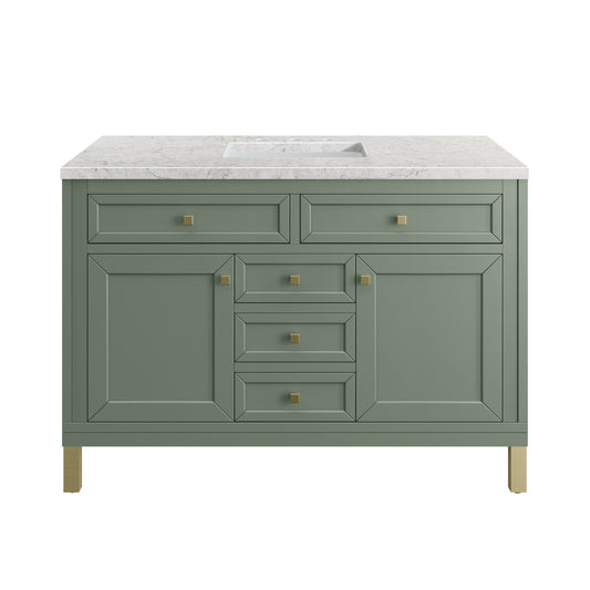 James Martin Vanities Chicago 48" Smokey Celadon Single Vanity With 3 cm Eternal Jasmine Pearl Silestone Top and FreePower Wireless Charger