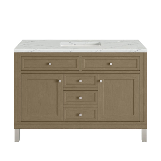 James Martin Vanities Chicago 48" Walnut Whisper Single Vanity With 3 cm Eternal Jasmine Pearl Silestone Top and FreePower Wireless Charger