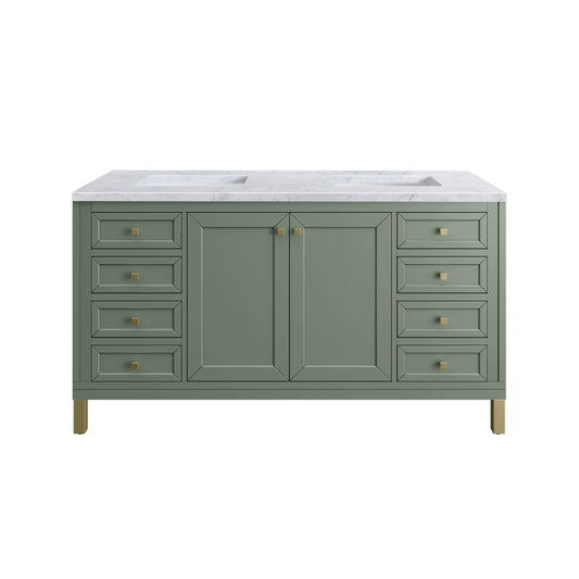 James Martin Vanities Chicago 60" Smokey Celadon Double Vanity With 3 cm Carrara Marble Top