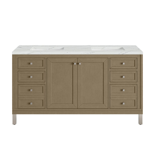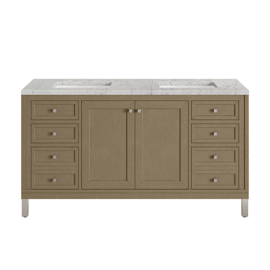 James Martin Vanities Chicago 60" Walnut Whisper Double Vanity With 3 cm Parisien Bleu Silestone Top