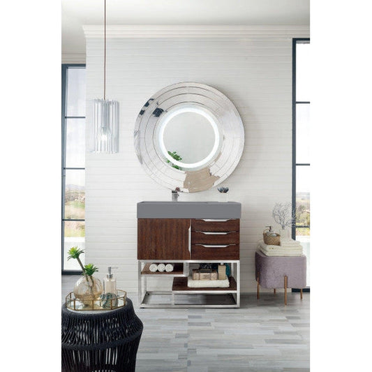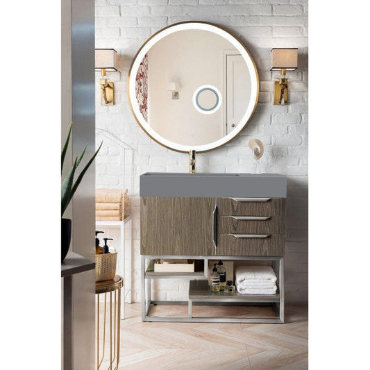 James Martin Columbia 36" Single Ash Gray Bathroom Vanity With 6" Glossy White Composite Countertop