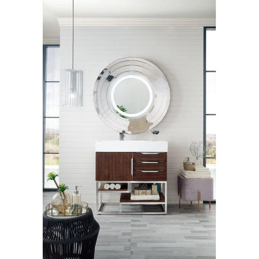 James Martin Columbia 36" Single Coffee Oak Bathroom Vanity With 6" Glossy White Composite Countertop