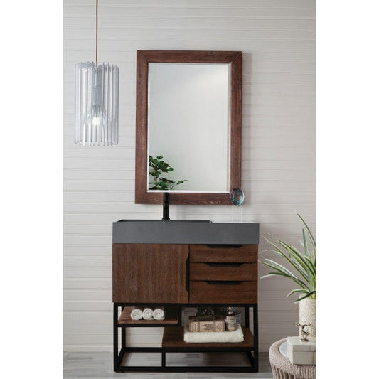 James Martin Columbia 36" Single Coffee Oak Bathroom Vanity With Matte Black Hardware and 6" Glossy Dusk Gray Composite Countertop