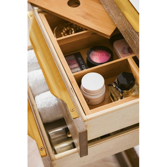 James Martin Columbia 36" Single Latte Oak Bathroom Vanity With Radiant Gold Hardware and 6" Glossy White Composite Countertop