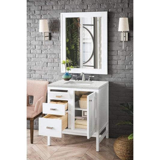 James Martin Addison 30" Single Glossy White Bathroom Vanity With 1" Eternal Marfil Quartz Top and Rectangular Ceramic Sink