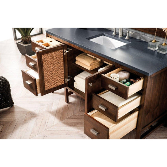 James Martin Addison 60" Single Mid Century Acacia Bathroom Vanity With 1" Charcoal Soapstone Quartz Top and Rectangular Ceramic Sink