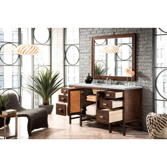 James Martin Addison 60" Single Mid Century Acacia Bathroom Vanity With 1" Classic White Quartz Top and Rectangular Ceramic Sink