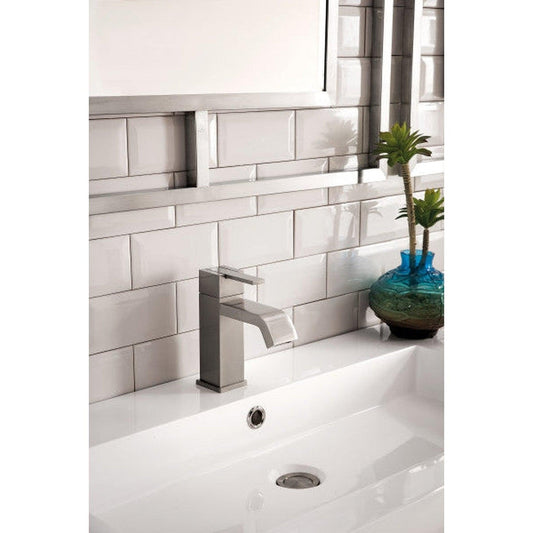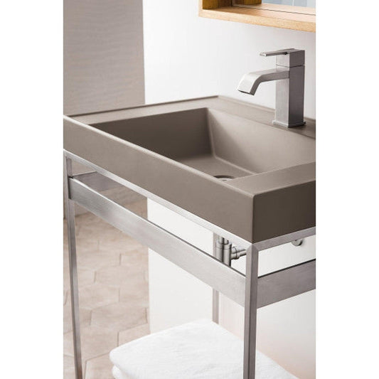 James Martin Boston 32" Single Brushed Nickel Stainless Steel Console Sink With White Glossy Composite Countertop