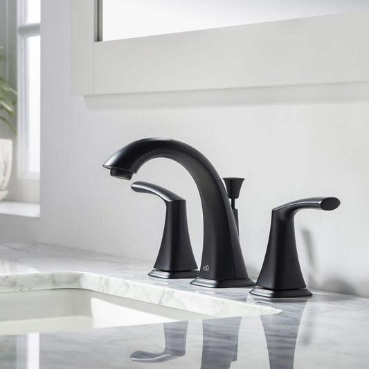 KIBI Stonehenge 8" Widespread Bathroom Sink Faucet with Pop-up In Matte Black Finish