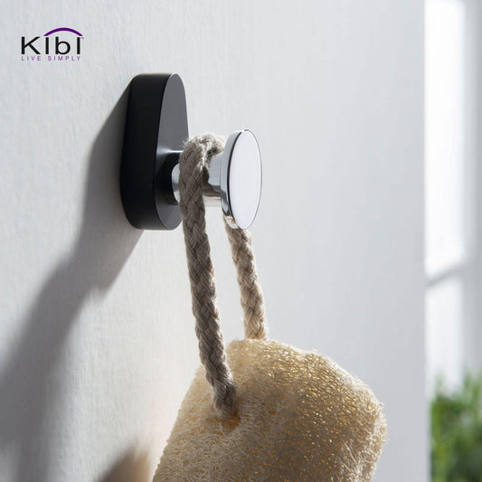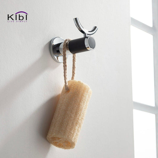 KIBI Abaco Bathroom Robe Hook in Chrome Black Finish