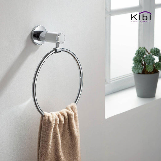 KIBI Abaco Bathroom Towel Ring in Chrome White Finish