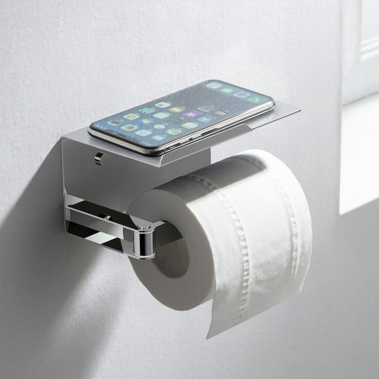 KIBI Deco Bathroom Toilet Paper Holder With Platform in Chrome Finish