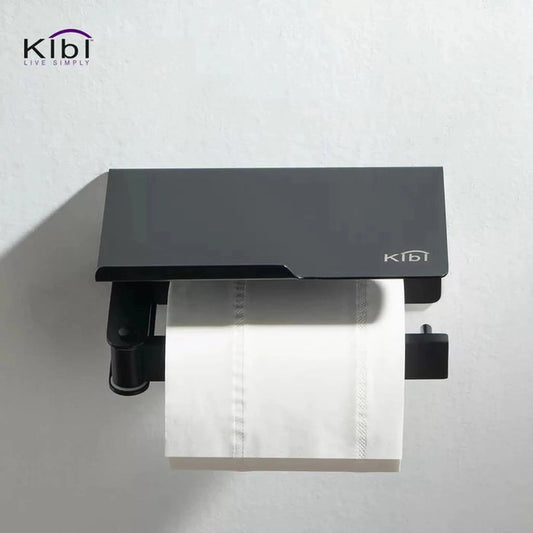 KIBI Deco Bathroom Toilet Paper Holder With Platform in Matte Black Finish