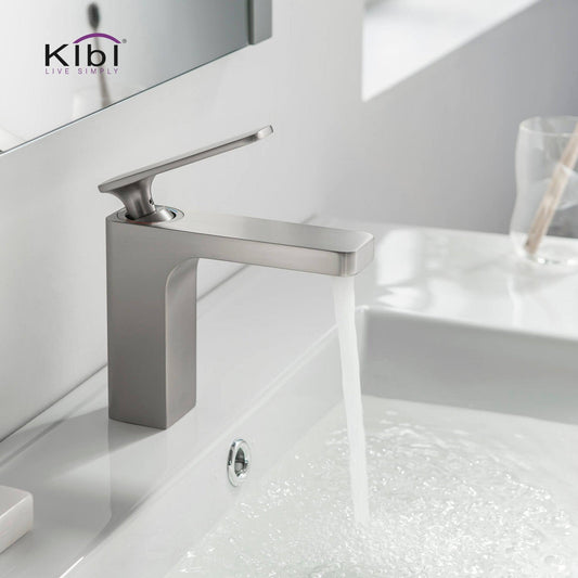 KIBI Mirage Single Handle Brushed Nickel Solid Brass Bathroom Vanity Sink Faucet