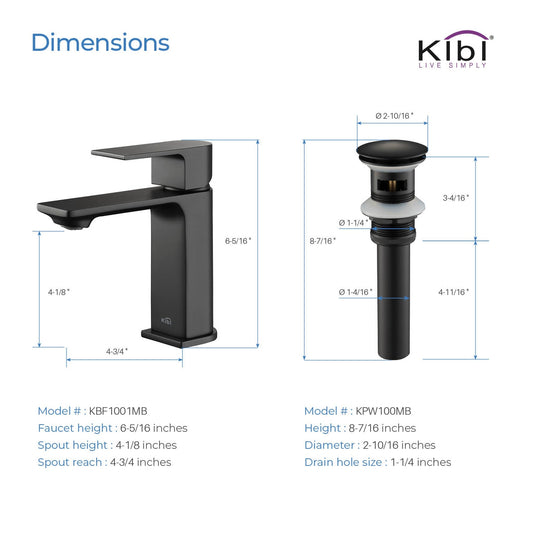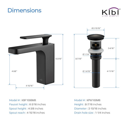 KIBI Mirage Single Handle Matte Black Solid Brass Bathroom Vanity Sink Faucet With Pop-Up Drain Stopper Small Cover With Overflow