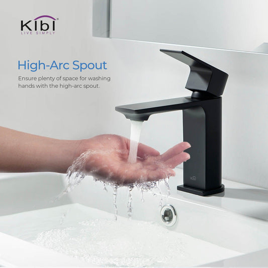 KIBI Mirage Single Handle Matte Black Solid Brass Bathroom Vanity Sink Faucet
