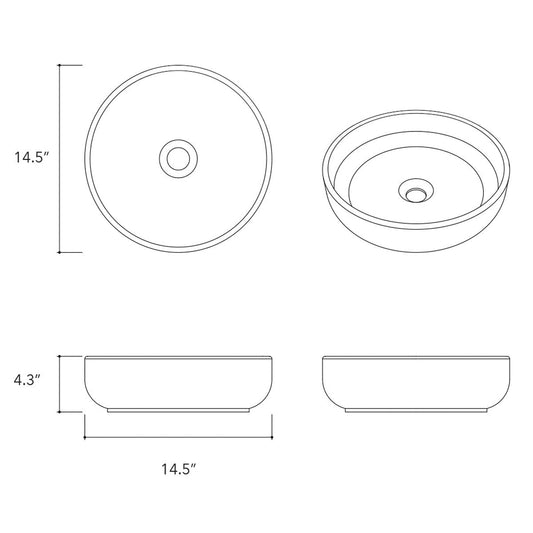 Konkretus Fladd02 15" Shadow Gray Top Mount Vessel Concrete Bathroom Sink