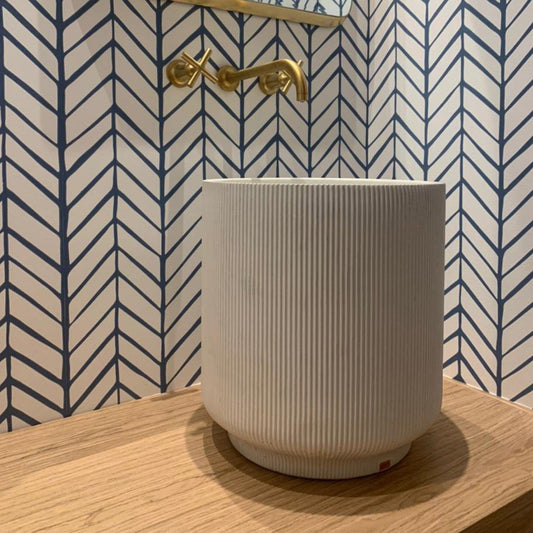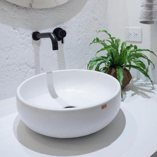 Konkretus Lotus05 15" Tulum White Top Mount Semi Pedestal Concrete Bathroom Sink