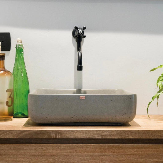 Konkretus Fladd03 15" Rain Gray Top Mount Square Vessel Concrete Bathroom Sink