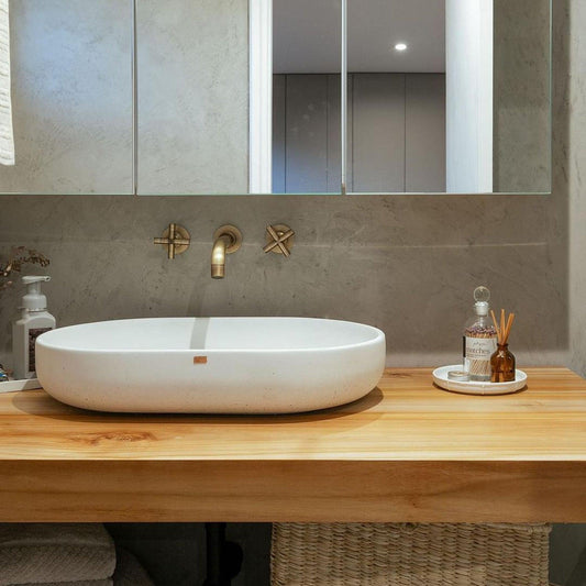Konkretus Fladd04 22" Tulum White Top Mount Oval Vessel Concrete Bathroom Sink
