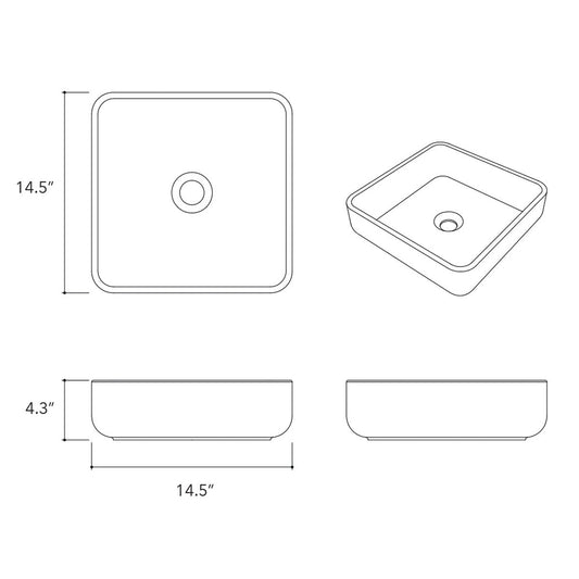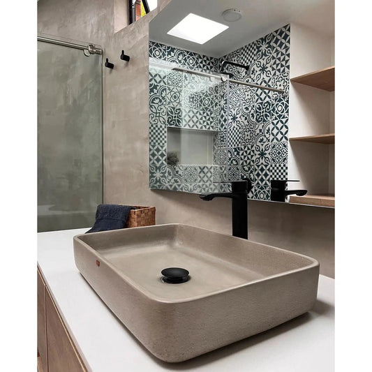 Konkretus Fladd03 15" Coal Black Top Mount Square Vessel Concrete Bathroom Sink