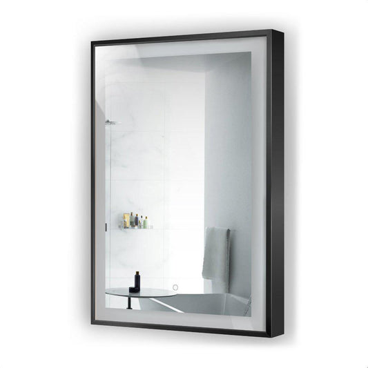 Krugg Reflections Soho 24" x 36" 5000K Rectangular Matte Black Wall-Mounted Framed LED Bathroom Vanity Mirror With Built-in Defogger and Dimmer