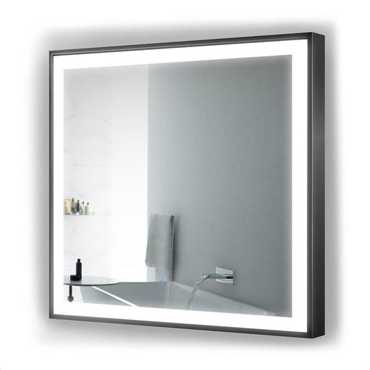 Krugg Reflections Soho 36" x 36" 5000K Square Matte Black Wall-Mounted Framed LED Bathroom Vanity Mirror With Built-in Defogger and Dimmer