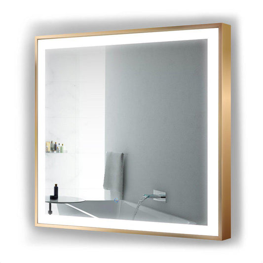 Krugg Reflections Soho 36" x 36" 5000K Square Matte Gold Wall-Mounted Framed LED Bathroom Vanity Mirror With Built-in Defogger and Dimmer