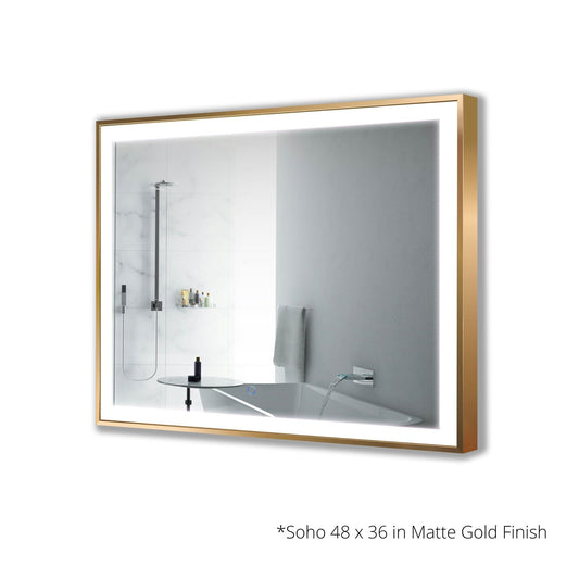 Krugg Reflections Soho 48" x 36" 5000K Rectangular Matte Gold Wall-Mounted Framed LED Bathroom Vanity Mirror With Built-in Defogger and Dimmer