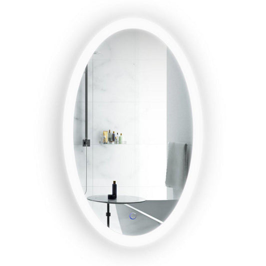 Krugg Reflections Sol 20" x 30" 5000K Oval Wall-Mounted Illuminated Silver Backed LED Mirror With Built-in Defogger and Touch Sensor On/Off Built-in Dimmer