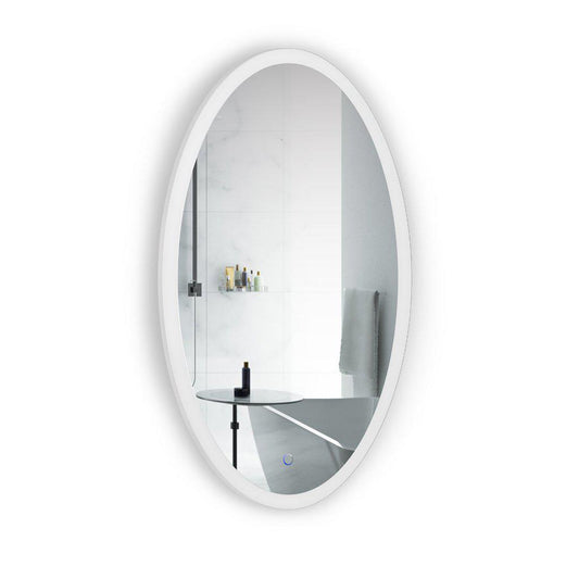 Krugg Reflections Sol 22" x 40" 5000K Oval Wall-Mounted Illuminated Silver Backed LED Mirror With Built-in Defogger and Touch Sensor On/Off Built-in Dimmer