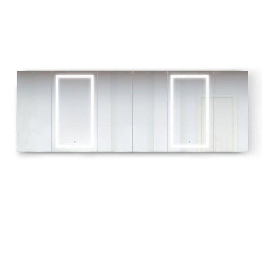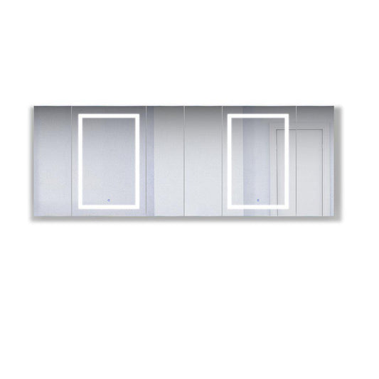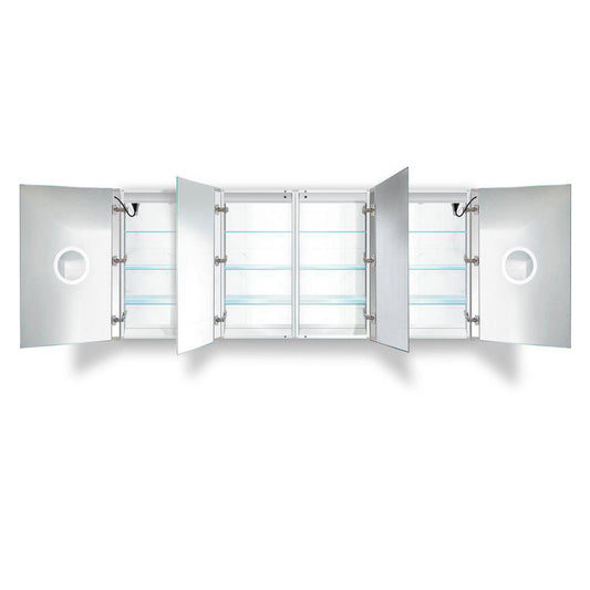 Krugg Reflections Svange 84" x 36" 5000K Double Quad-View Left-Left-Right-Right Opening Recessed/Surface-Mount Illuminated Silver Backed LED Medicine Cabinet Mirror With Built-in Defogger, Dimmer and Electrical Outlet